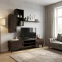 طاولة تلفزيون بني 180 سم مع رفوف جدارية وستاند - خشب ماليزي